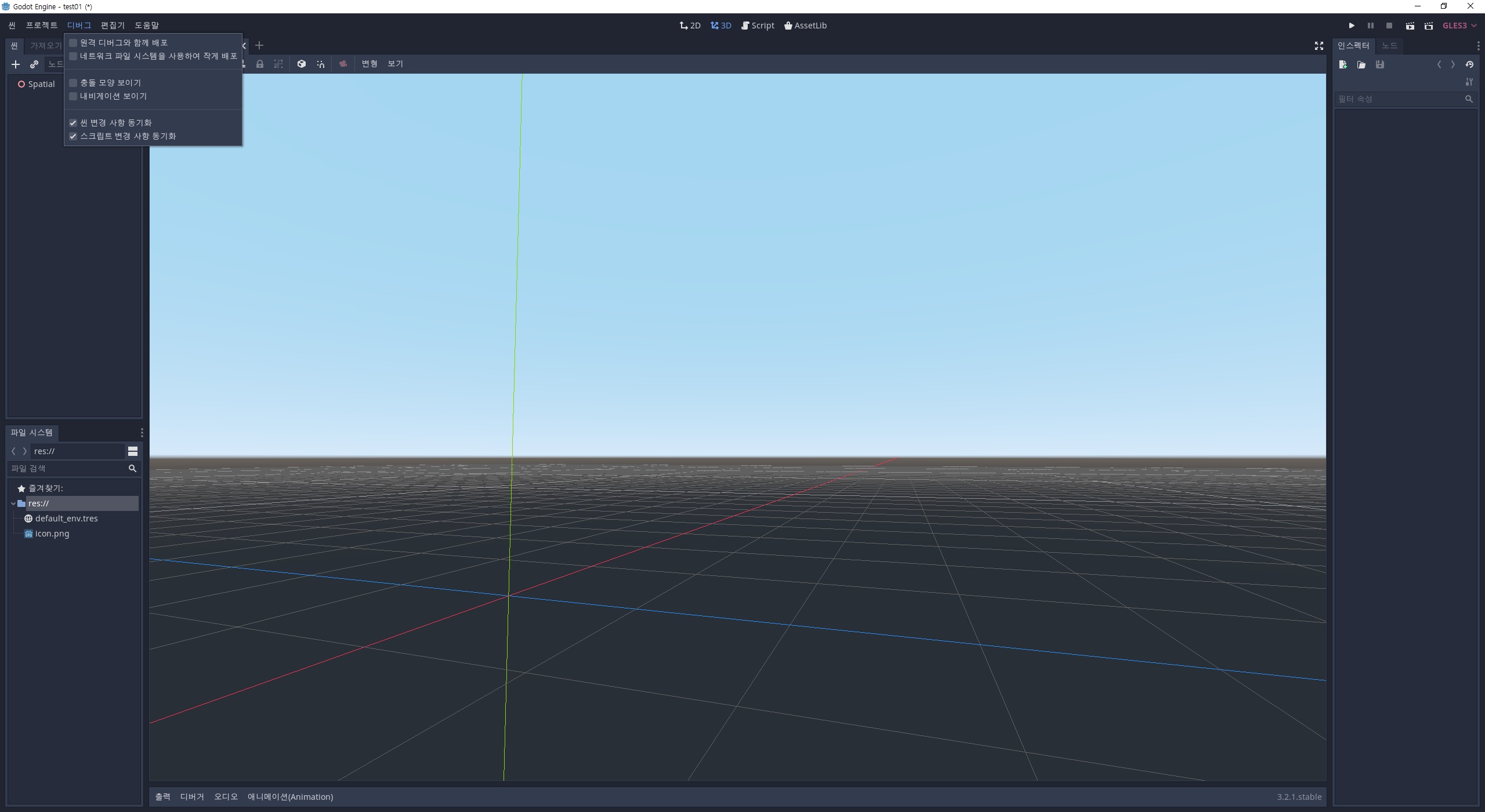 간단한 화면과 함께 AssetLib라는 상점까지 연계할 수 있다. 그러나 CG소스를 다운받거나 효과를 적용하는 부분이 아무래도 기존의 게임엔진에 비해 열악하다. 타임라인을 통해 동영상을 제작하거나 각종 3D s/w와의 연계성 역시 다소 아쉬운 부분으로 꼽을 수 있다.