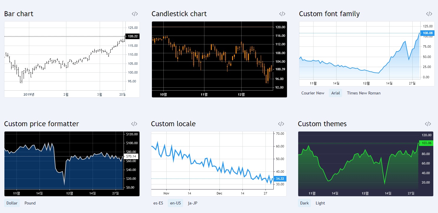 아래의 Lightweight charts에서 데모버전을 체험할 수 있다.
