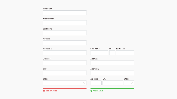 위와 같이 우편번호, 도시, 주와 같은 입력필드를 일률적으로 나열하기보다는