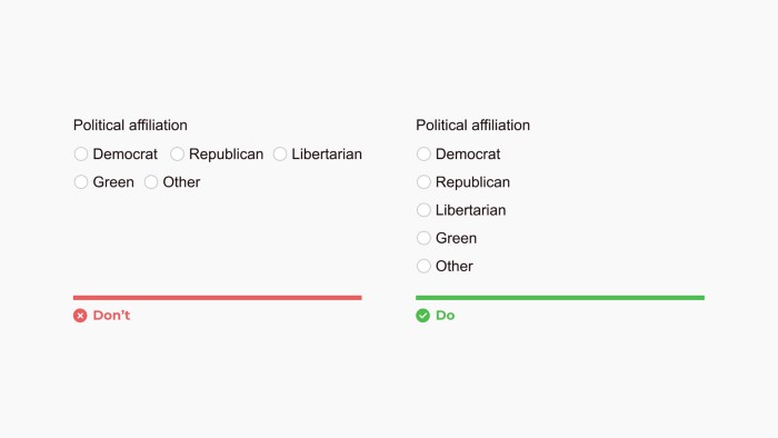 가령, 위의 오른쪽 사진처럼 라디오 버튼을 그룹핑없이 쭉 나열할 경우,
