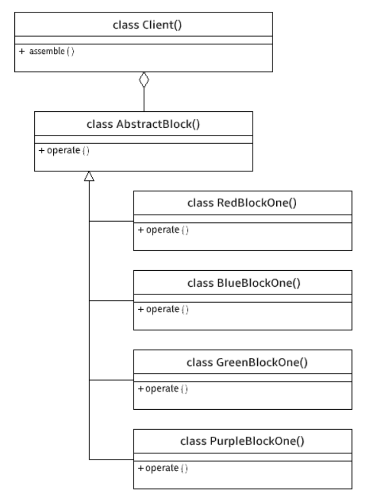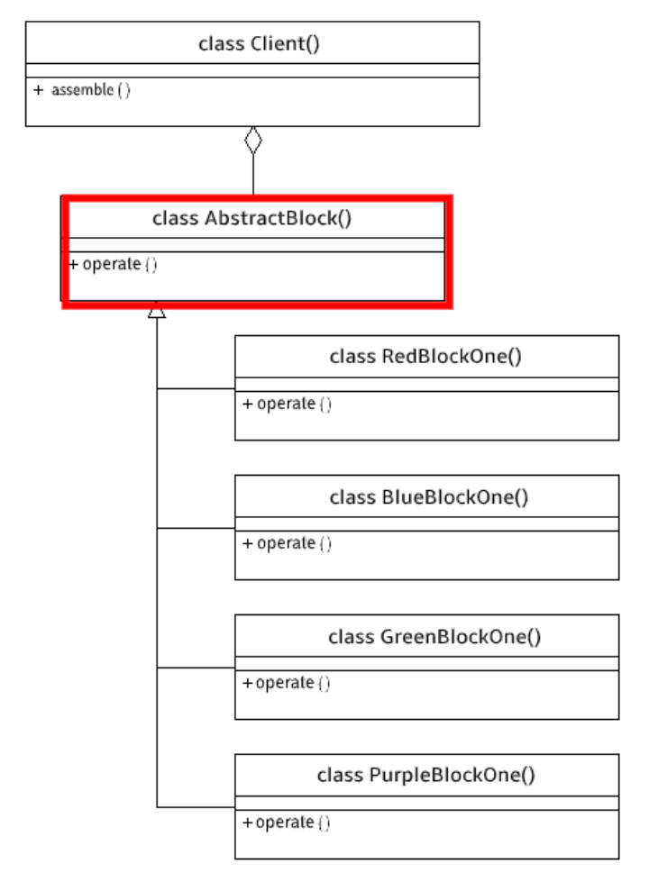 Client클래스는 Block클래스들이 의존하는 추상클래스를 합성한다.