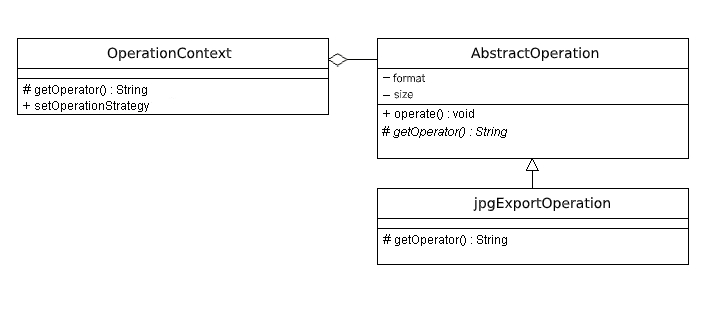 하지만 템플릿 메서드는 스트래터지와 달리 '재사용'을 할 수 없다. 가령, 위의 다이어그램에는 없지만 AbstractOperation을 상속받은 gifExportOperation클래스가 있다고 가정해보자. gifExportOperation은 jpgExportOperation을 사용할 수 있을까? AbstractOperation상속을 포기하지 않는 한 불가능하다. 즉, 상속은 강한 결합을 발생시킨다. 상속으로 인한 의존성을 제거하려면 스트래터지 패턴이 답이다.