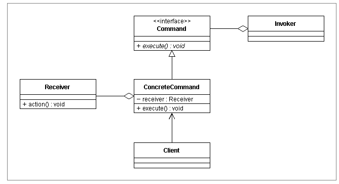 커맨드 패턴은 단순하다. 실제 복잡한 알고리즘은 Receiver에 있고, ConcreateCommand는 Receiver를 받아서 execute메서드를 실행하는 역할만 담당한다. 여기서 excute메서드는 Command 인터페이스를 상속받는 기능이다. Client는 Command의 실행에 의존하며, 내부 알고리즘은 알 수 없다. Command의 execute()를 실행할 뿐, 각자 맡은 역할에 맞게 내부에서 움직이는 Receiver의 기능과 상관없다. 따라서 내부 알고리즘은 Command에 의해 보호된다.