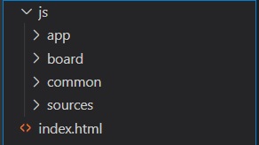 js폴더 아래 app, board, common, sources 폴더를 생성하고,