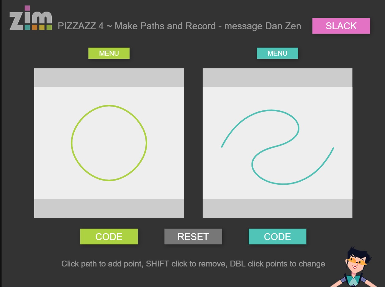 zim.js를 사용한다면, 코드 7~8줄만으로 쉽게 패스 애니메이션을 생성할 수 있다.