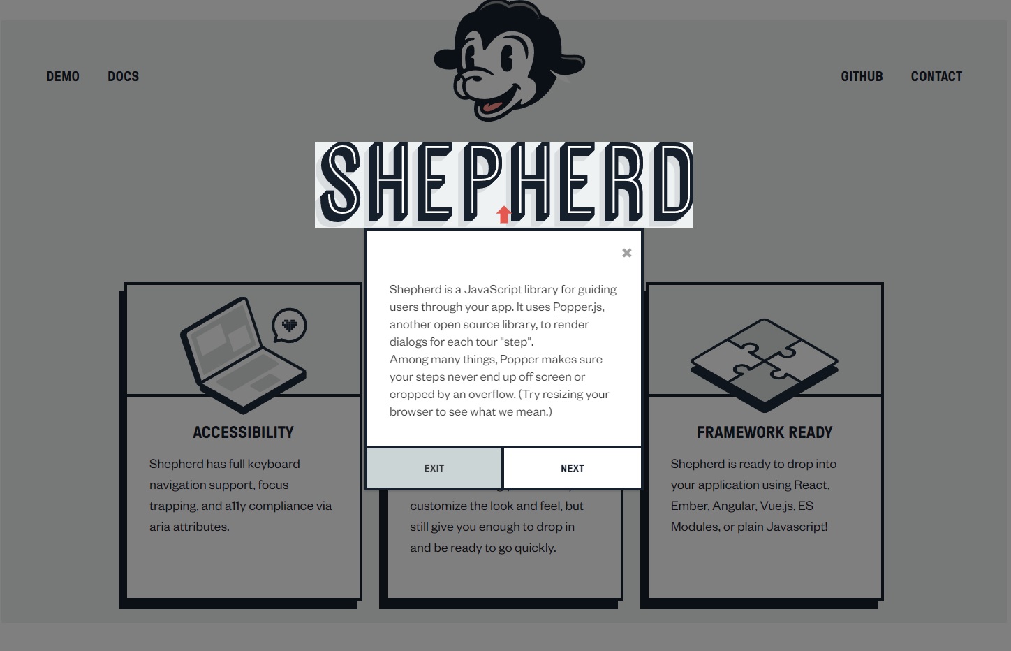 SHEPHERD.js는 팝업창을 통해 특정위치로 이동할 수 있는 JS라이브러리다.