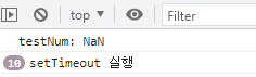 '코드2' 실행 결과, waitCode함수 내의 for루프가 끝나기 전까지 'console.log('testNum:' + testNum)'구문이 실행되지 않는 것을 확인할 수 있다.