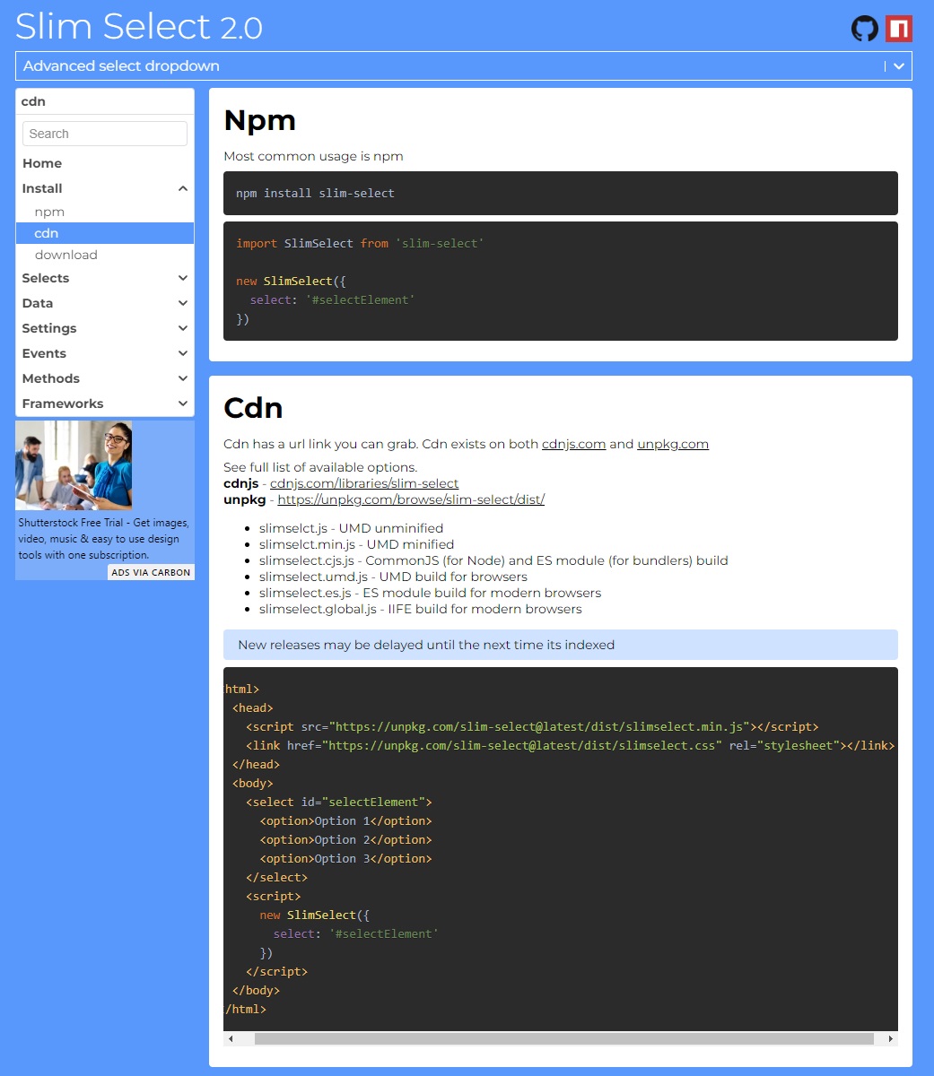 slimselect 홈페이지에 디테일한 설명을 볼 수 있으며,