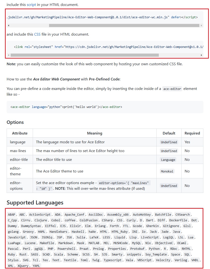 <script src="https://cdn.jsdelivr.net/gh/MarketingPipeline/Ace-Editor-Web-Component@1.0.1/dist/ace-editor-wc.min.js" defer></script>