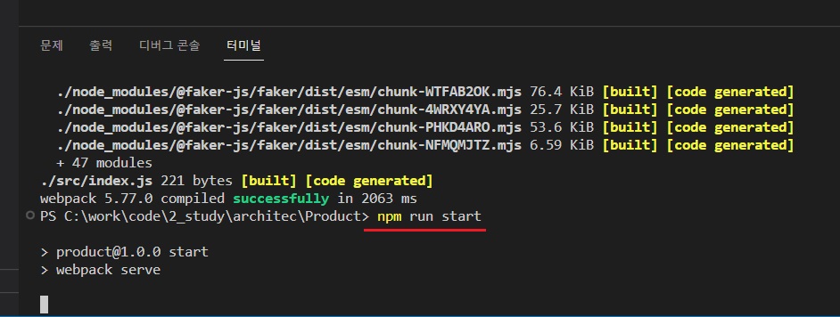 패키지 파일 수정이 끝나면, npm run start를 실행해보자.