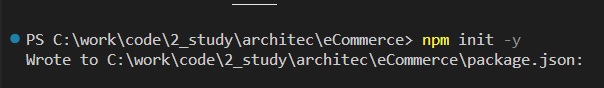'eCommerce'폴더 아래, Product폴더를 생성한 뒤 버전 초기화를 진행한다. 참고로 버전 초기화는 'npm init -y'를 사용하면 된다.