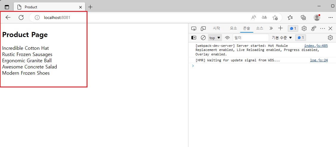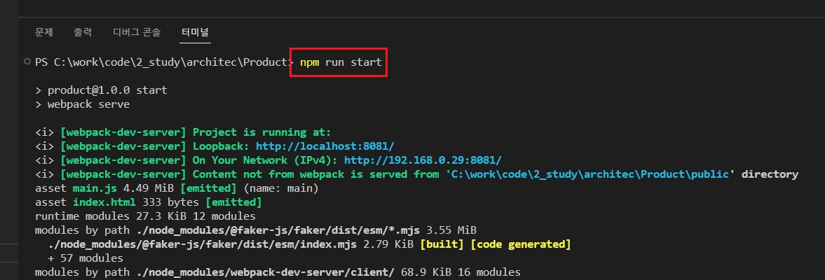 html웹펙 플러그인이 작동하며 8081포트에서 'public/index.html'파일이 실행된다.