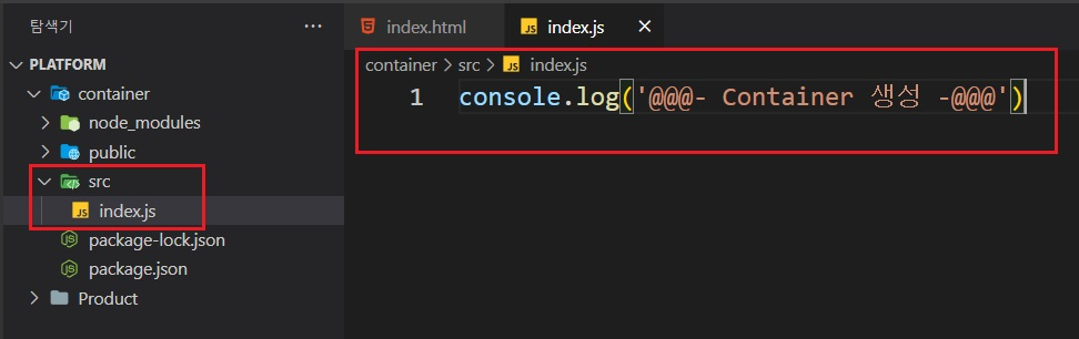 각 팀들의 개발 코드를 취합하는 index.js파일을 src폴더와 함께 생성해준다.