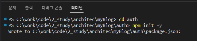 각 패키지 폴더에서 'npm초기화'를 실행한다.(package.json 생성)