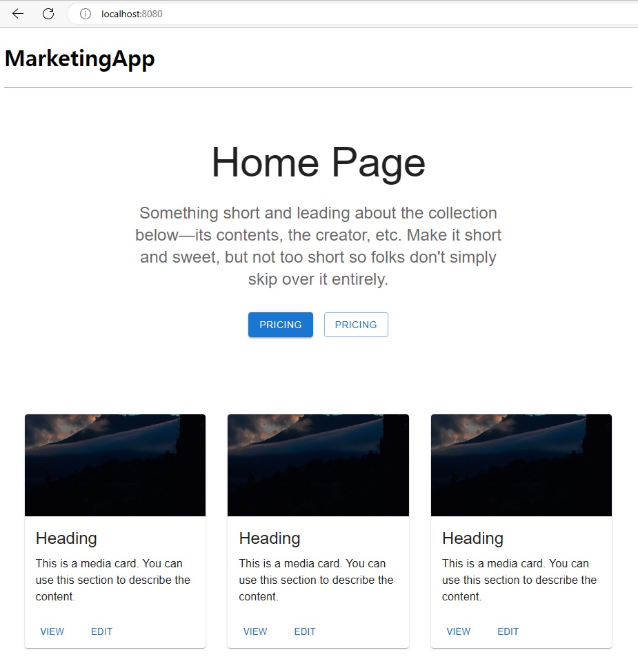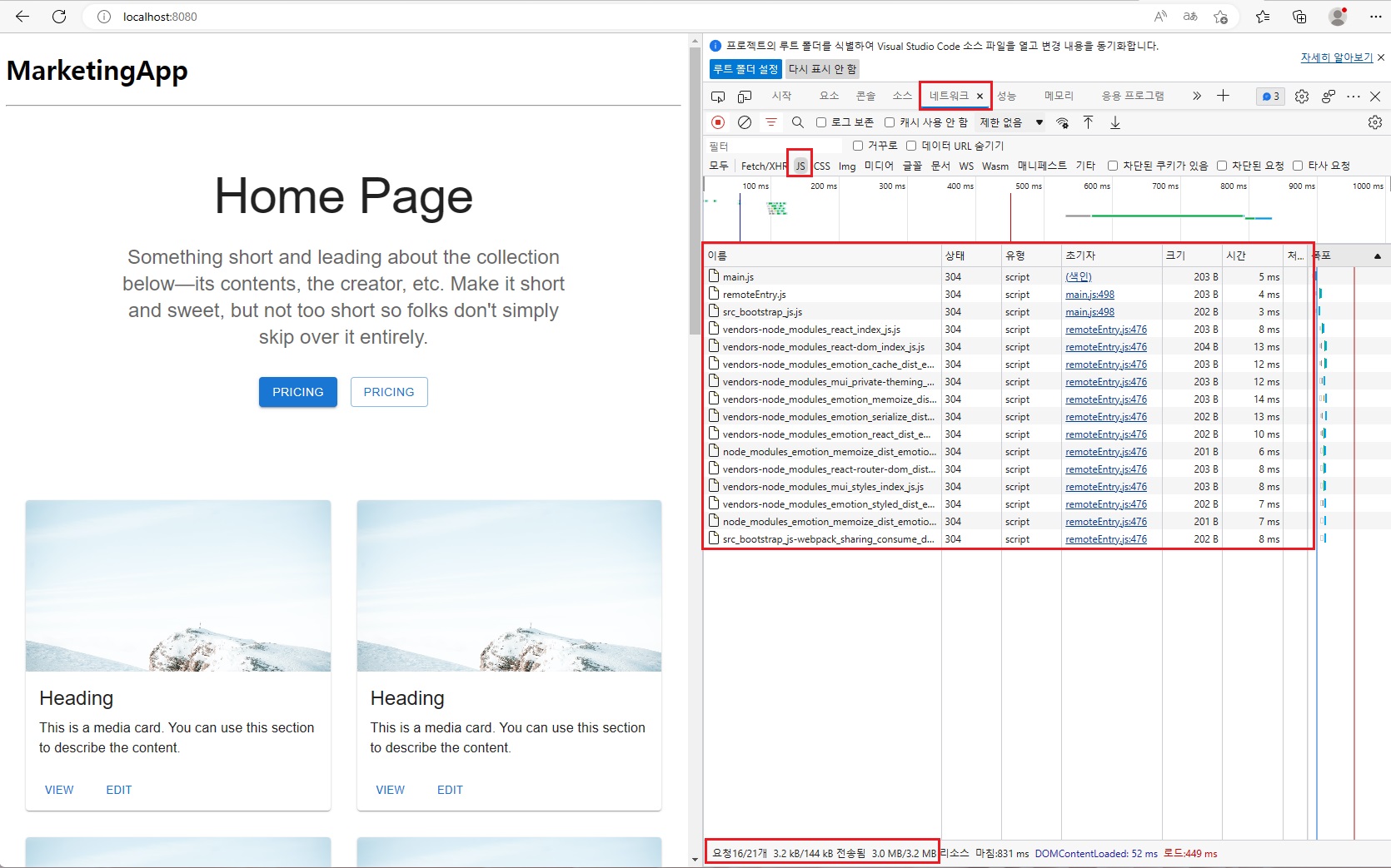 8080포트의 container는 런타임으로 8081포트의 marketing데이터를 받아온다. 이를 위해 marketing패키지(폴더)는 Federation설정을 해줘야 한다.