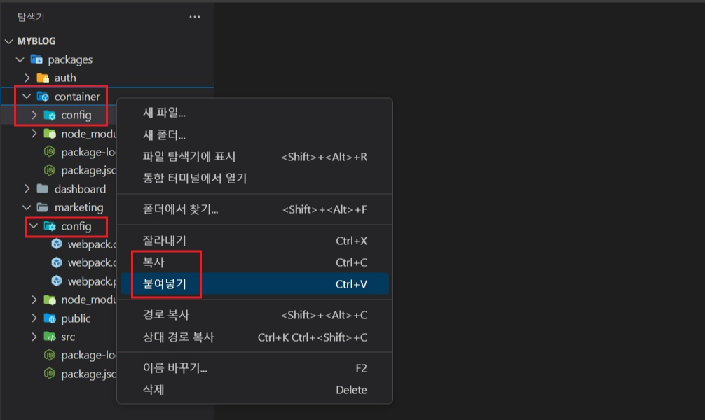 marketing/config 폴더를 통째 복사하여 container폴더에 붙여넣는다.