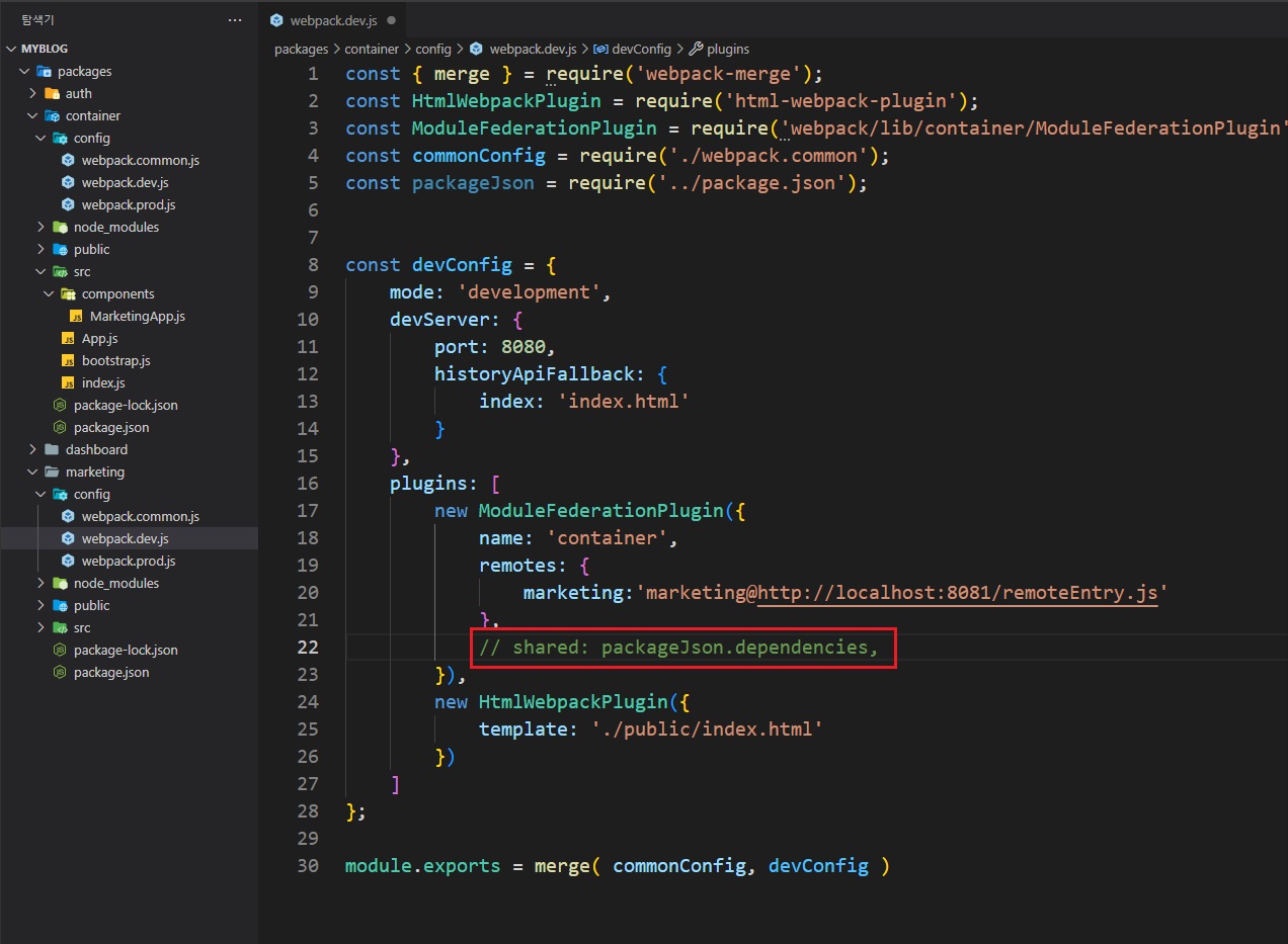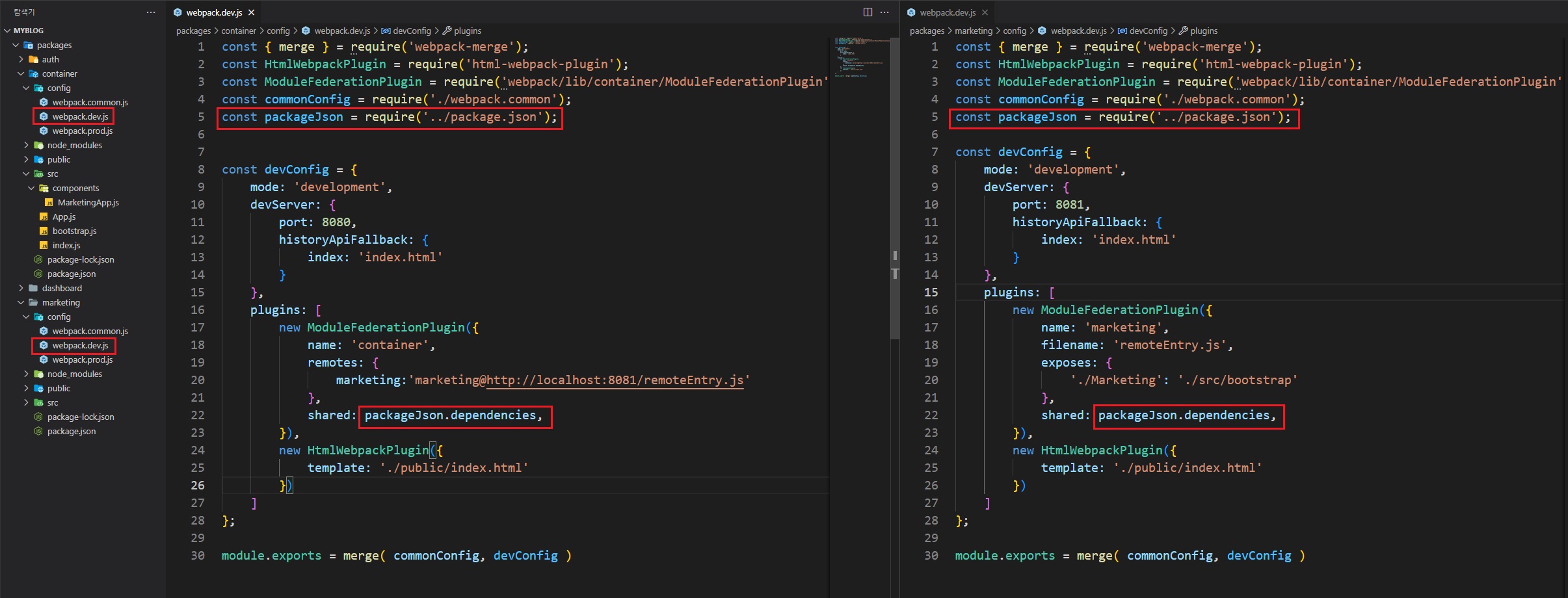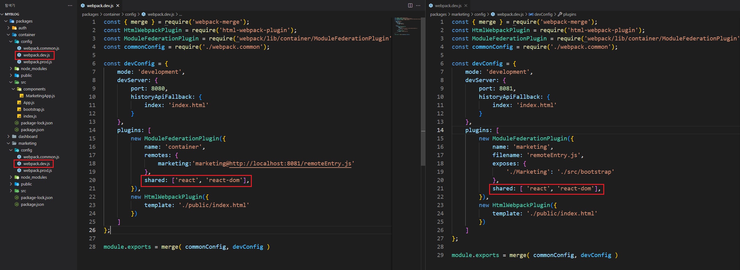 'webpack.dev.js'의 shared를 아래와 같이 설정해준다.
