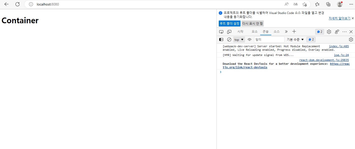 8080포트에서 container/ src / bootstrap.js의 결과를 확인할 수 있다.